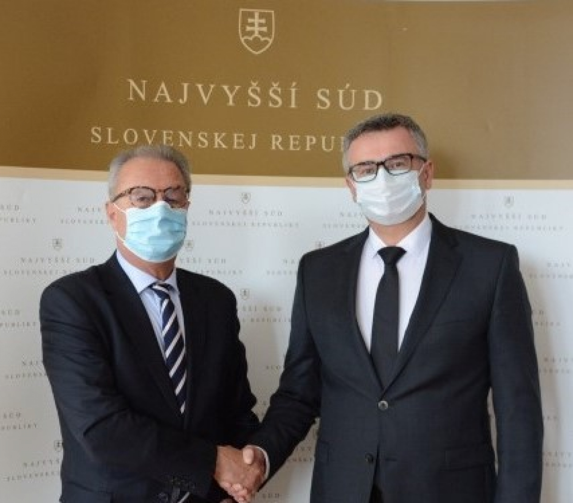 Bratislava, 14.07.2020 - Predseda Ústavného súdu Slovenskej republiky Ivan Fiačan s predsedom Najvyššieho súdu Slovenskej republiky Jánom Šikutom dnes popoludní na pracovnom stretnutí rokovali o pripravovaných aktuálnych legislatívnych zmenách v oblasti justície.